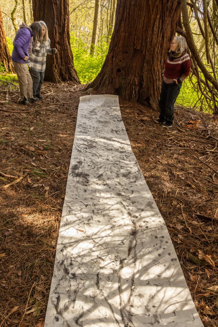Using texturally exquisite blended mulberry paper and graphite, we will create a 20’ communal scroll reflecting our connection to this arboreal ‘rain dance’. The scroll created will go on to be a part of a larger collective exhibition at the Chilliwack Cultural Centre in August 2026.