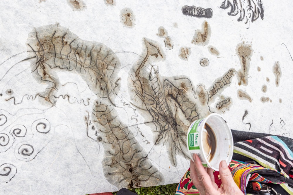 This traveling often non-verbal story that you have been walking with us, was partially inspired by Cree Elder Grandma Amy Eustergurling; Manchew S’quao or Earthworm Woman and the care in which she imparted her circular MW teachings.